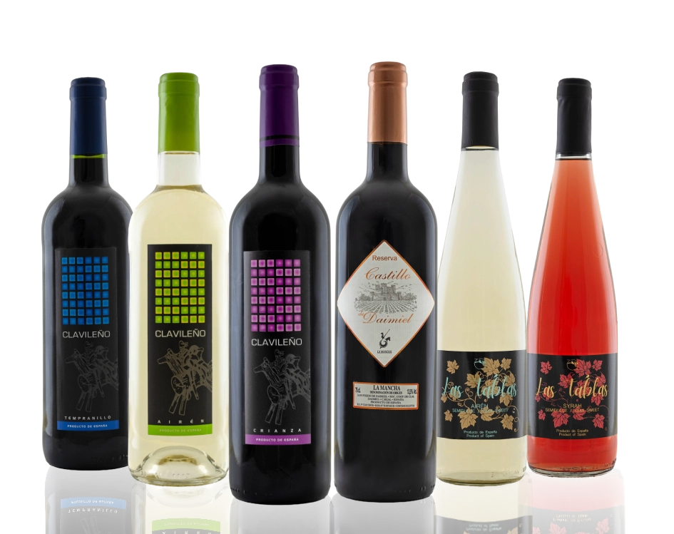 Nuestra gama más alta, dónde destacamos un tinto reserva y un vino blanco espumoso brut. Esta marca pertenece a la Denominación de origen “La Mancha”.